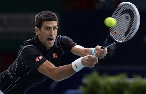 | Novak Djokovic en compétition, le 31 octobre au tournoi de Paris-Bercy. |