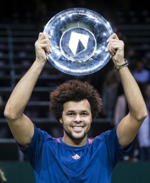 | Jo-Wilfried Tsonga après sa victoire dans le tournoi de Rotterdam, le 19 février. |