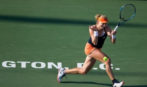 | La Russe Ekaterina Makarova face à la Française Océane Dodin en demi-finales au tournoi de Washington, le 5 août 2017. |