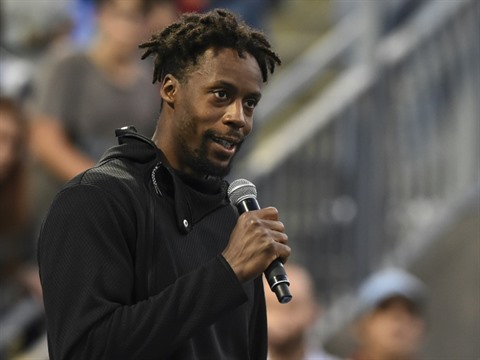 | Le Français Gaël Monfils s'adresse au spectateur après avoir déclaré forfait pour la demi-finale du Masters 1000 de Montréal face à Rafael Nadal, le 10 août. |