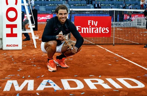 | Rafael Nadal, roi de Madrid après sa victoire sur Dominic Thiem, le 14 mai. |