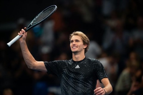 | La joie de l'Allemand Alexander Zverev, vainqueur de l'Américain Frances Tiafoe, 7-5, 6-4, en finale du tournoi ATP de Vienne, le 31 octobre. |
