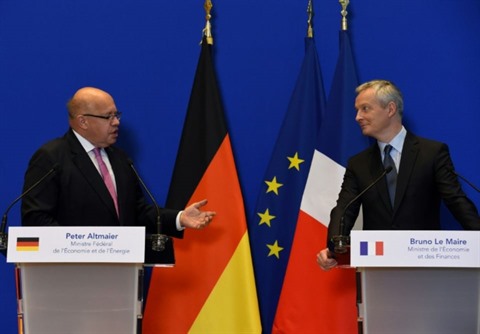 | Le ministre français de l'Économie, Bruno Le Maire (droite), et son homologue allemand, Peter Altmaier, le 11 juillet à Paris. |