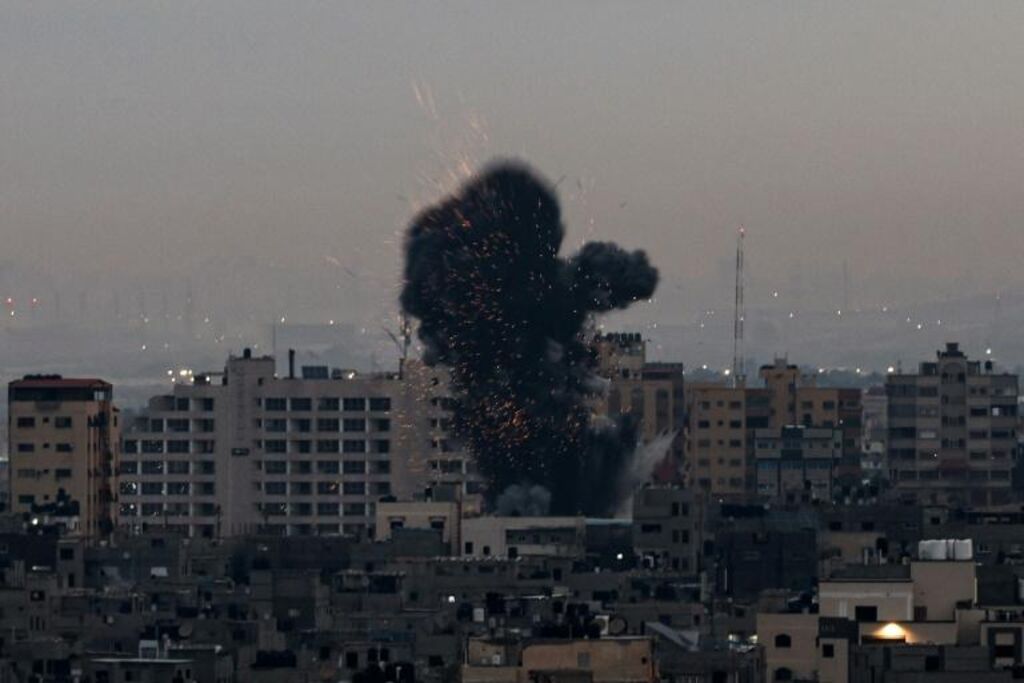 | Frappes aériennes israéliennes sur la ville de Gaza, le 23 février. |