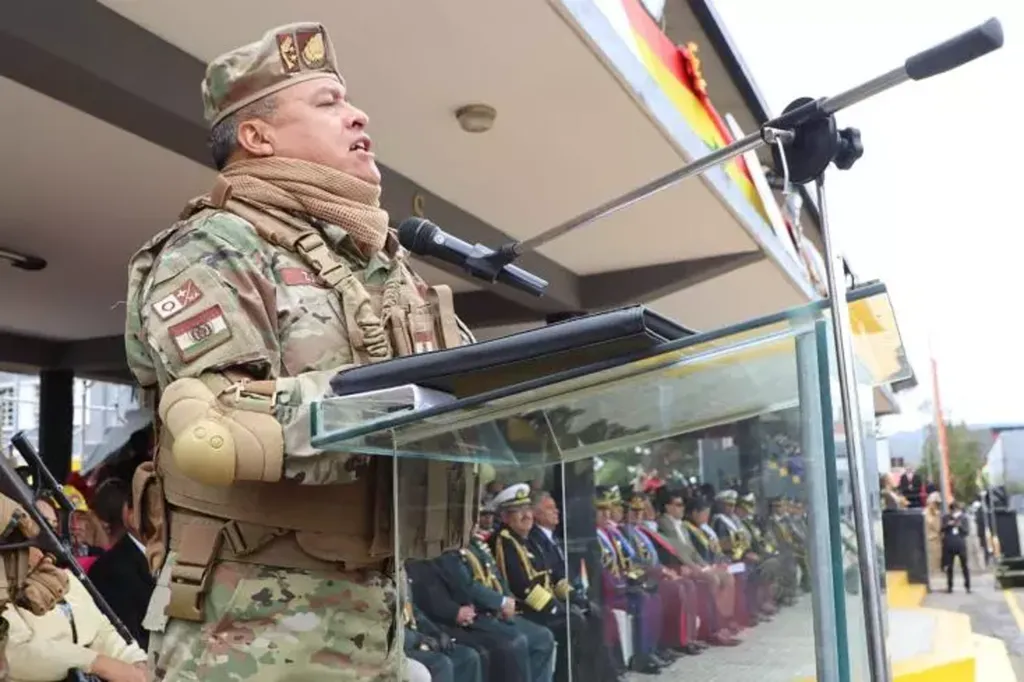 | Le général Juan José Zúñiga pendant un cérémonie militaire à La Paz, le 18 avril. |