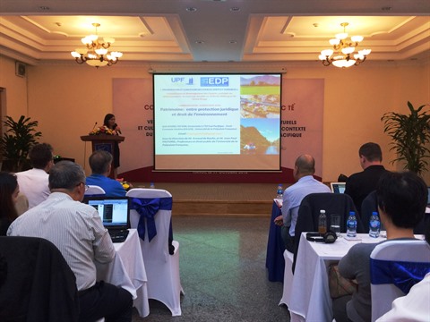 | La doctorante Hoàng Thi Vân Anh (de l’Université de la Polynésie française) prononce une intervention sur le patrimoine, entre protection juridique et droit de l’environnement. |