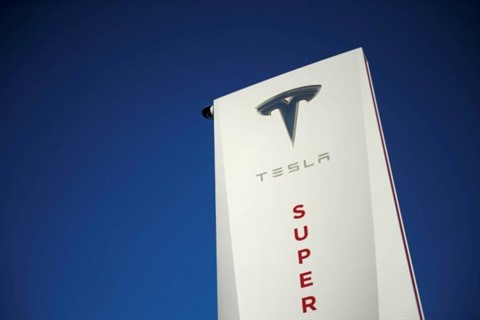 | Une station de recharge Tesla à Hawthorne, en Californie, en janvier. |