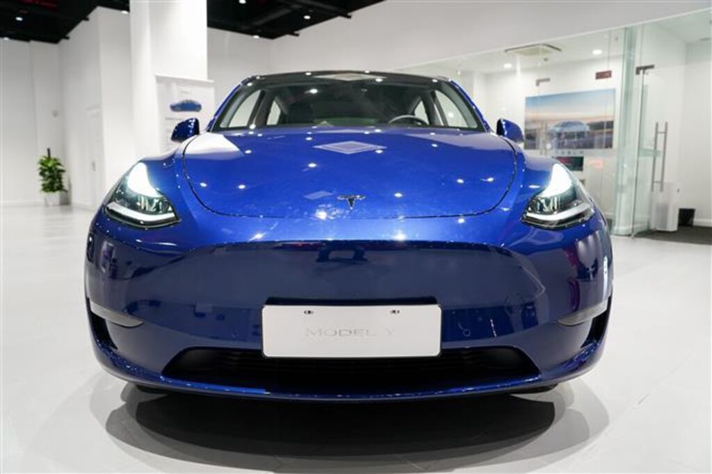 | Une modèle Y de Tesla exposé à Shanghai (Chine). |