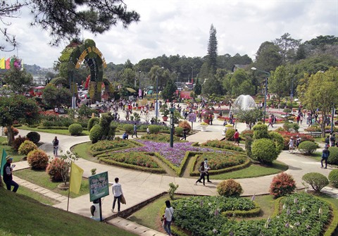 | Le parc central de la station climatique de Dà Lat, capitale provinciale de Lâm Dông (hauts plateaux du Centre), est rempli de touristes pendant la fête du Têt. |