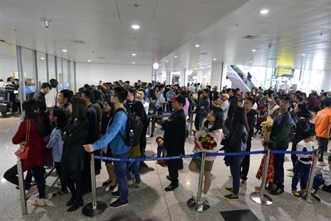 | La queue à une porte d’embarquement de l’aéroport de Nôi Bai, à Hanoï, le 25 janvier 2017. |