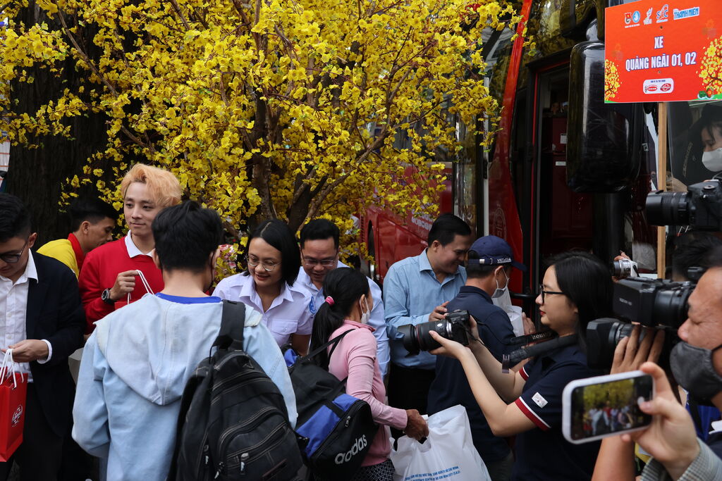 Le comité d'organisation a offert le 28 janvier des billets de trains et de bus aux étudiants, et le 31 janvier, ils ont embarqué les bus pour retourner chez eux, dans leurs villages natals pour les retrouvailles familiales à l'occasion du Têt traditionnel.