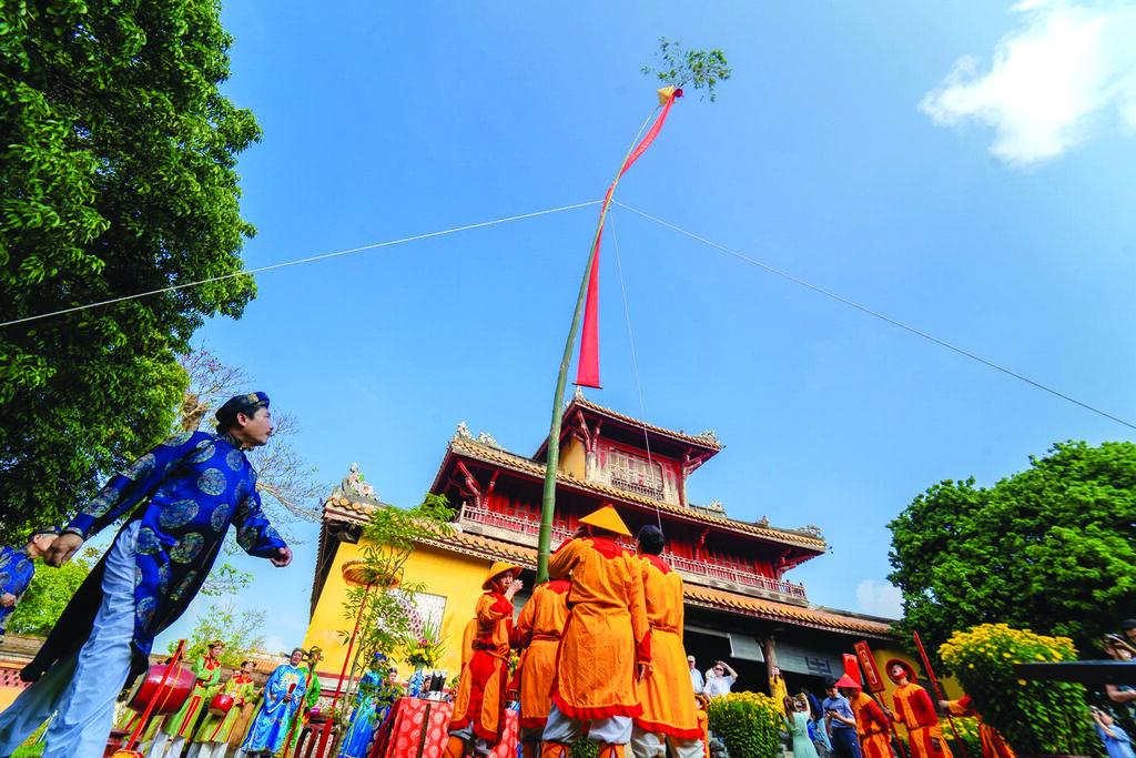 | Reconstitution de la cérémonie d’érection du cây nêu. |