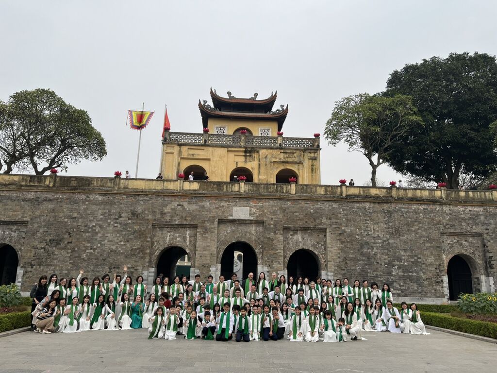 | Les membres du chœur Gió Xanh (Green Wind - Vent Vert) et du Groupe des Quatre (G4) à Hanoï. |