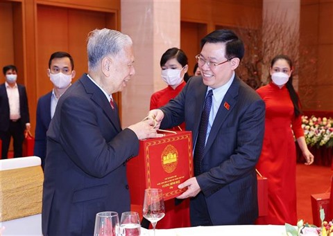 Le président de l'Assemblée nationale, Vuong Dinh Huê, a exprimé son plaisir de rencontrer et de souhaiter les vœux de Nouvel An lunaire aux dirigeants retraités de l'Assemblée nationale et du Comité permanent de l'Assemblée nationale.