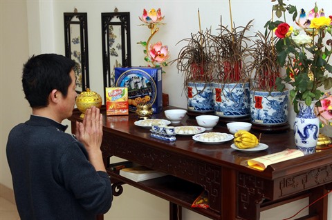 | Les Vietnamiens ont l'habitude d'acheter ou de confectionner des "bánh trôi" et "bánh chay" pour le culte aux ancêtres lors du Têt hàn thuc. |