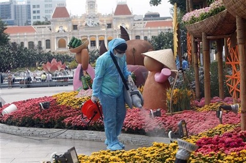 | Désinfection pour lutter contre le COVID-19 à Hô Chi Minh-Ville. |