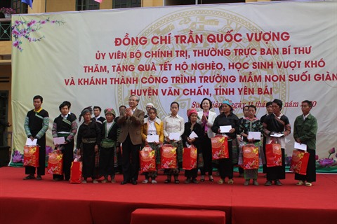 Le 11 janvier, Trân Quôc Vuong, permanent du secrétariat du Comité central (CC) du Parti communiste du Vietnam (PCV), a remis 120 cadeaux du Têt aux familles démunies et méritantes des deux communes de Nam Lanh et Suôi Giang, district de Van Chân, province montagneuse de Yên Bai (Nord).