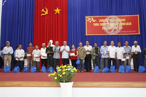 | Remise des cadeaux à des familles méritantes dans la province de Hâu Giang. Photo : Hông Thai/VNA/CVN |