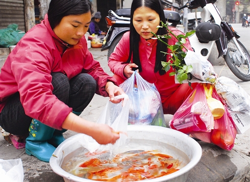 | Sélection des carassins d’offrandes pour la cérémonie dédiée aux Génies de la cuisine au 23e jour du dernier mois lunaire. Photo : CTV/CVN |