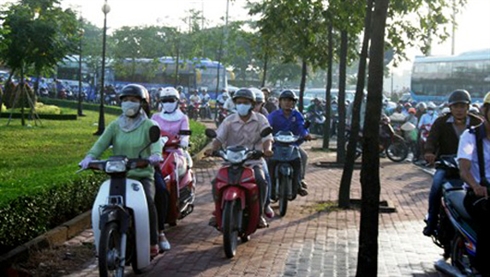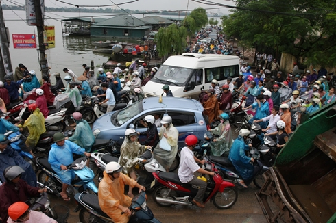 | À Hanoi, il est très difficile pour les piétons de traverser les rues aux heures de pointe où les embouteillages sont monnaie courante. |