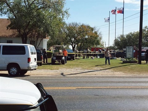 | Un périmètre de sécurité a rapidement été déployé autour de l'église de Sutherland Springs, le 5 novembre. |