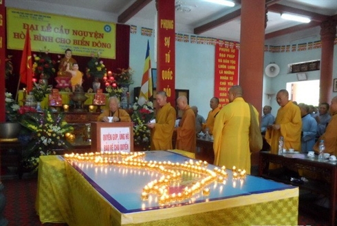 Des centaines de bonze, bonzesses et de fidèles ont participé à cette grande cérémonie afin de prier pour la paix en Mer Orientale et le monde entier, ainsi que pour exprimer leur protestation contre l'implantation illégale de la plate-forme de forage chinoise Haiyang Shiyou-981 dans la zone économique exclusive et sur le plateau continental du Vietnam.