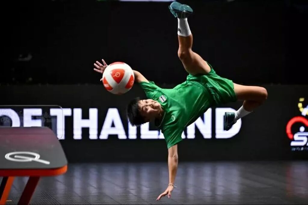 | La Thaïlandaise Jutatip Kuntatong, lors des Championnats du monde de teqball, à Bangkok, le 2 décembre. |