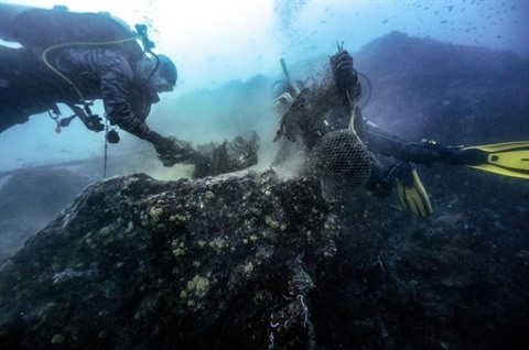 Ingpat accompagne les plongeurs du projet Net free seas, qui vise à récupérer les filets usagés et à recycler le plastique qu'ils contiennent.