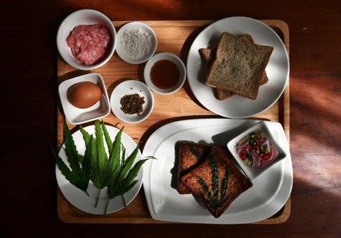"La feuille de cannabis donne un petit peu d’amertume", relève Thierry Martino, un designer français de bijoux. "On rit beaucoup, est-ce que cela vient de ce qu'on mange", s'amuse-t-il, assurant pourtant ne pas avoir ressenti d'effets secondaires particuliers.