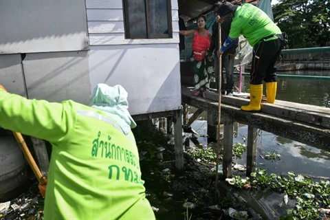 | Des employés municipaux nettoient les canaux de Bangkok le 9 juin. |