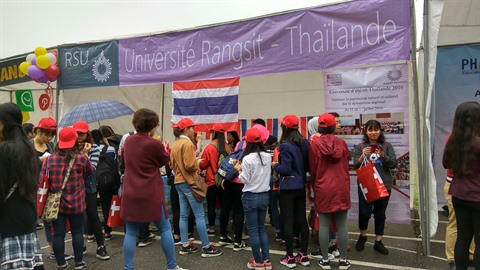 | Le stand de l’Université Rangsit a attiré beaucoup de monde lors de la Journée festive et culturelle en l’honneur de la Journée internationale de la Francophonie, le 11 mars à l |