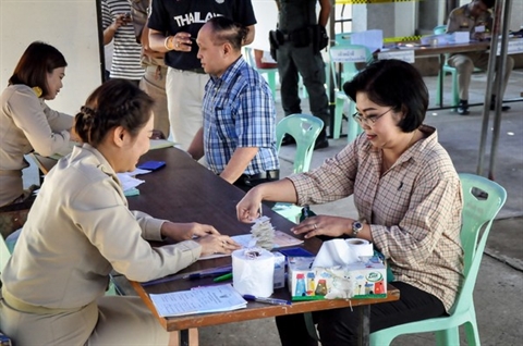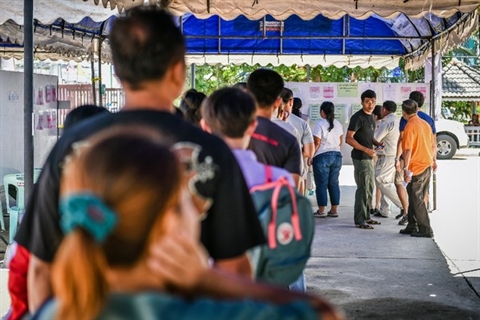 | File d'attente devant un bureau de vote lors du référendum sur une nouvelle Constitution, le 7 août 2016 à Buriram, en Thaïlande. |