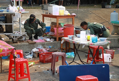 Les assaillants circulant dans deux pick-ups ont surgi sur une place de marché le soir du 22 févier dans le district de Khao Saming, dans la province du Trat, et tiré sur la foule.
