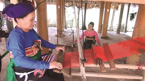 | Tissage de brocatelle chez l’ethnie minoritaire Thai. |