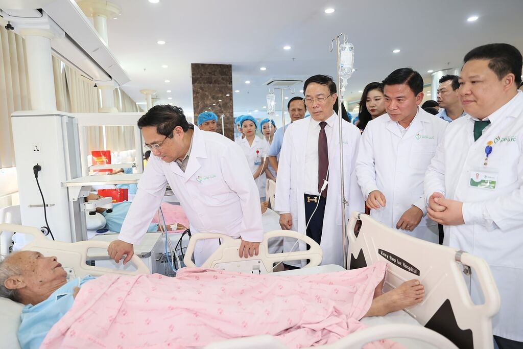 | Le Premier ministre Pham Minh Chinh rend visite à un patient dans l'Hôpital général international de Hop Luc. |
