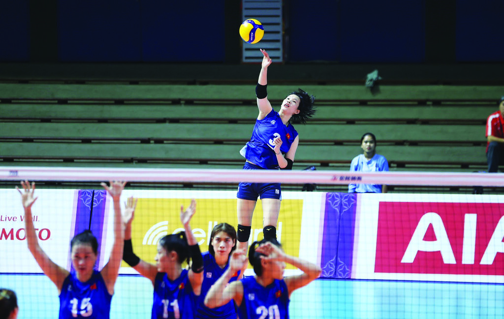| La volleyeuse Trân Thi Thanh Thuy lors d’un match aux SEA Games 32 disputés en mai 2023 au Cambodge. |