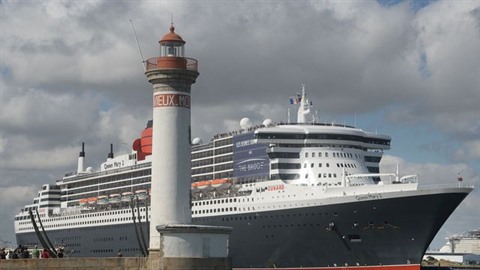 | Le Queen Mary 2 arrive au port de Saint-Nazaire, le 24 juin 2017. |