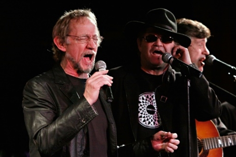 | Peter Tork (g) et Micky Dolenz du groupe de rock The Monkees, le 3 avril 2012 à New York. |