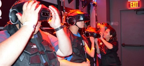 Le droïde C-3PO vous invite à taper un code et vos mains recouvertes d'une armure blanche par la magie numérique s'efforcent d'obéir. Vous croisez le robot R2D2 et le touchez. Vos partenaires avancent avec vous dans ce labyrinthe numérique hyper réaliste, eux aussi transformés en espions intersidéraux. Et quand vous êtes touché par une balle de mitraillette laser, vous sentez une (petite) secousse électrique.
