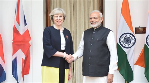 "Il est vital que l'Inde et le Royaume-Uni, deux pays liés par l'Histoire, travaillent de concert pour définir l'économie du savoir du XXIe siècle", a déclaré le Premier ministre indien, le nationaliste hindou Narendra Modi, qui s'entretiendra avec Mme May dans la journée.