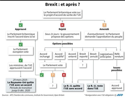"Le temps est venu des choix difficiles et des solutions pratiques", a-t-il ajouté. Les autres options, selon lui, sont un Brexit sans accord, néfaste pour l'économie britannique, ou pas de Brexit du tout.