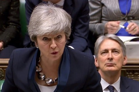 | Capture d'une vidéo transmise par le parlement britannique montrant la Première ministre Theresa May s'exprimant devant les députés le 26 février. |