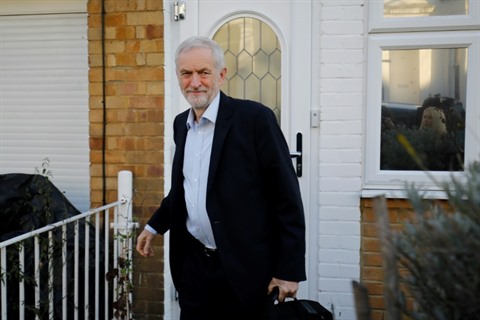 | Le leader du Labour Jeremy Corbyn quittant son domicile londonien le 26 février. |