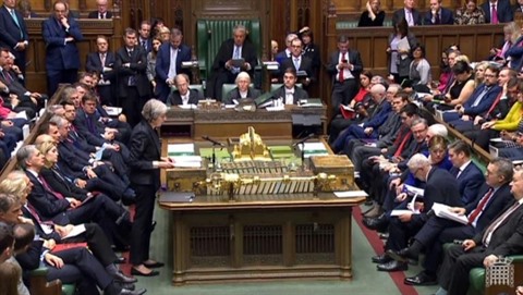 | Capture d'écran d'une vidéo fournie par le Parlement britannique de Theresa May s'adressant aux députés, le 15 novembre. |