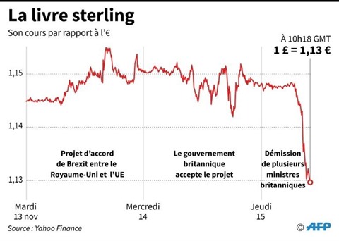 Le Brexiter conservateur Mark Francois a calculé qu'il était "mathématiquement impossible" de le faire adopter. Un autre Tory, Andrew Bridgen, a carrément appelé Theresa May à démissionner "dans l'intérêt national". "Le gouvernement est en plein chaos", a résumé le leader de l'opposition travailliste Jeremy Corbyn. La cacophonie régnant au Royaume-Uni, qui a fait chuter la livre sterling de près de 2% face à l'euro et au dollar, contrastait avec la satisfaction du Parlement européen, selon lequel l'accord est "le meilleur" possible pour l'UE.