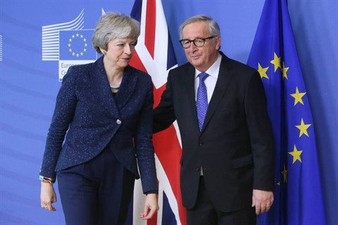 | La Première ministre britannique Theresa May et le président de la Commission européenne Jean-Claude Juncker, le 7 février à Bruxelles. |