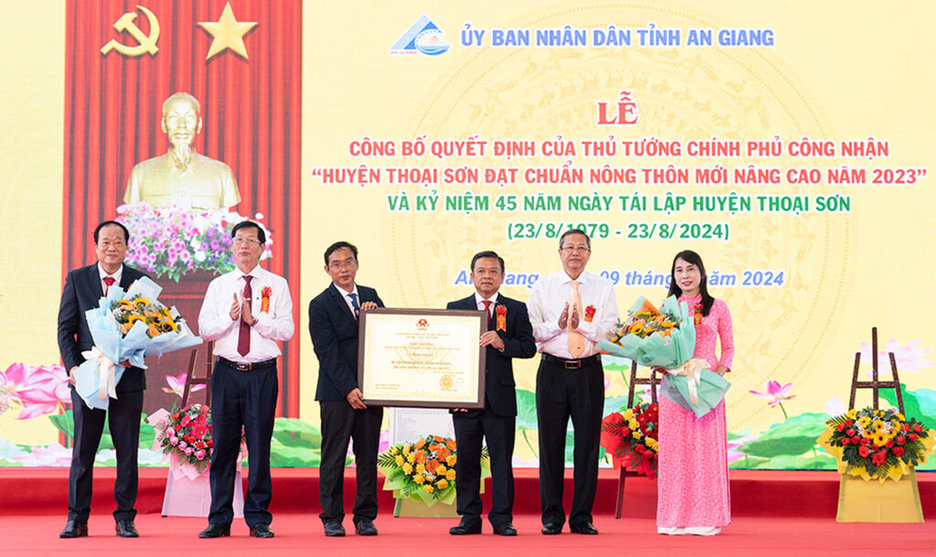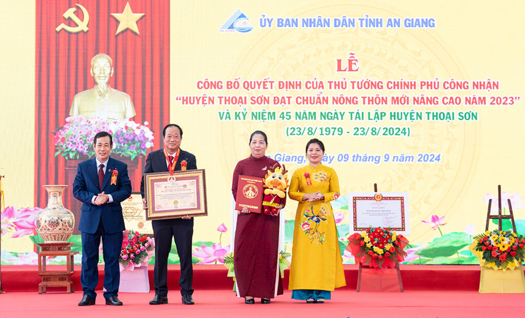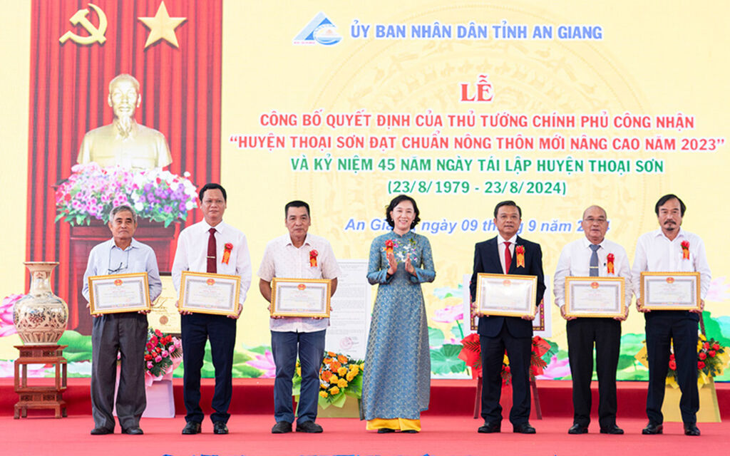 Grâce à ces réalisations, le 1er août 2024, le Premier ministre a publié la décision N°750 reconnaissant le district de Thoai Son, dans la province d'An Giang, comme conforme aux normes avancées du Programme de construction de Nouvelle ruralité pour 2023, soit deux ans avant les objectifs fixés. Thoai Son est ainsi devenu l'un des trois premiers districts du delta du Mékong à être reconnu comme localité atteignant les normes du Programme avancé.