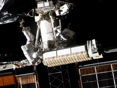 Durant 6h28, les astronautes ont fini de positionner, fixer, brancher et déployer un premier panneau solaire nouvelle génération, long de 19 mètres, et commencé à en installer un second.