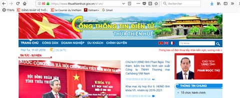 | Image capurée d'écran du portail d’information électronique de Thua Thiên-Huê. |