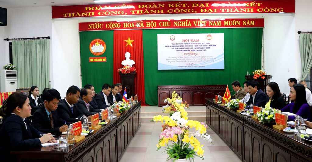 | Échange d'expériences entre Thua Thiên-Huê (Vietnam) et Champassak (Laos) sur le travail de Front de la Patrie. |